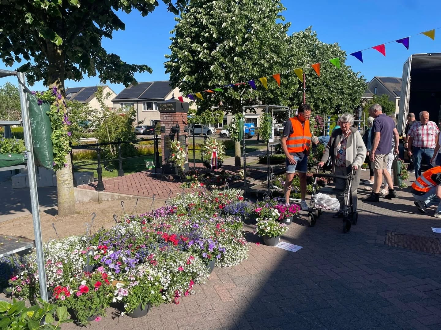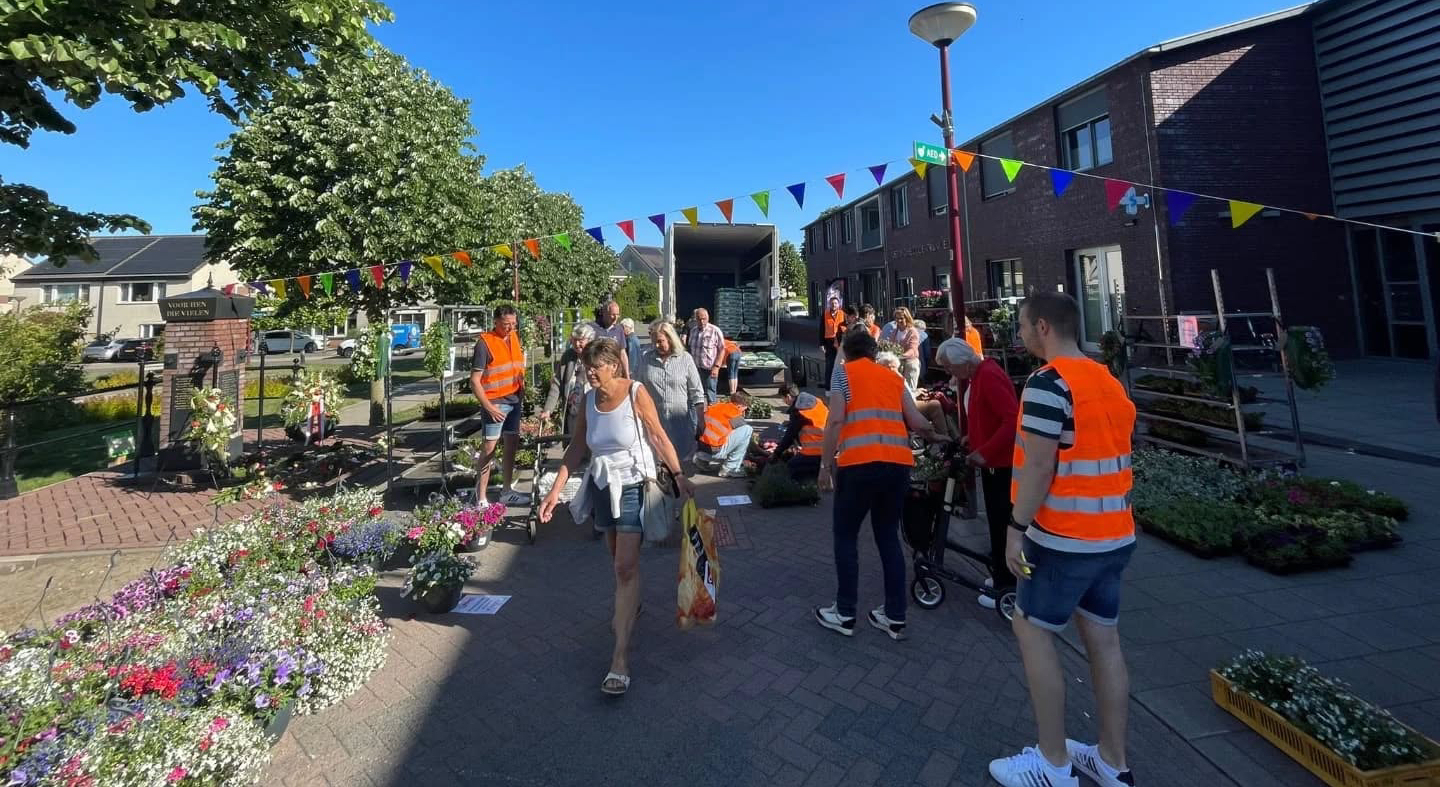 De keuze bestond uit een groot assortiment plantjes, van geraniums tot petunia’s en vlijtige liesjes en niet te vergeten de potgrond.